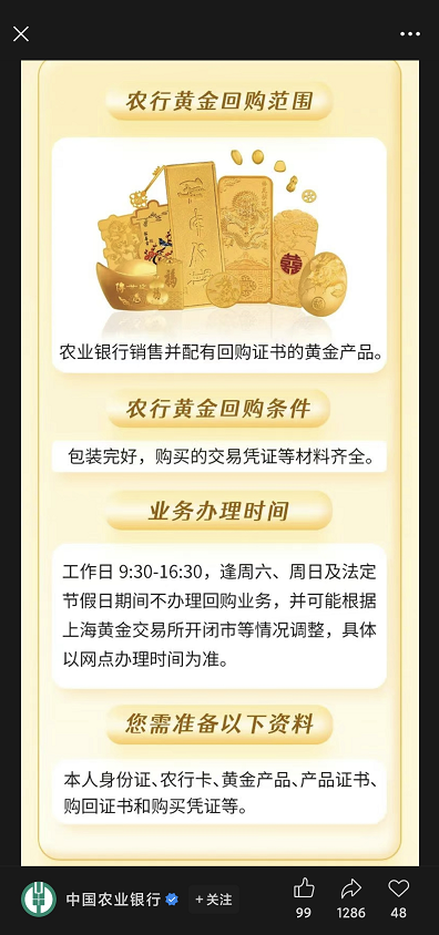 (2)和银行预约黄金回购业务的时间,部分银行支持线上预约回购;